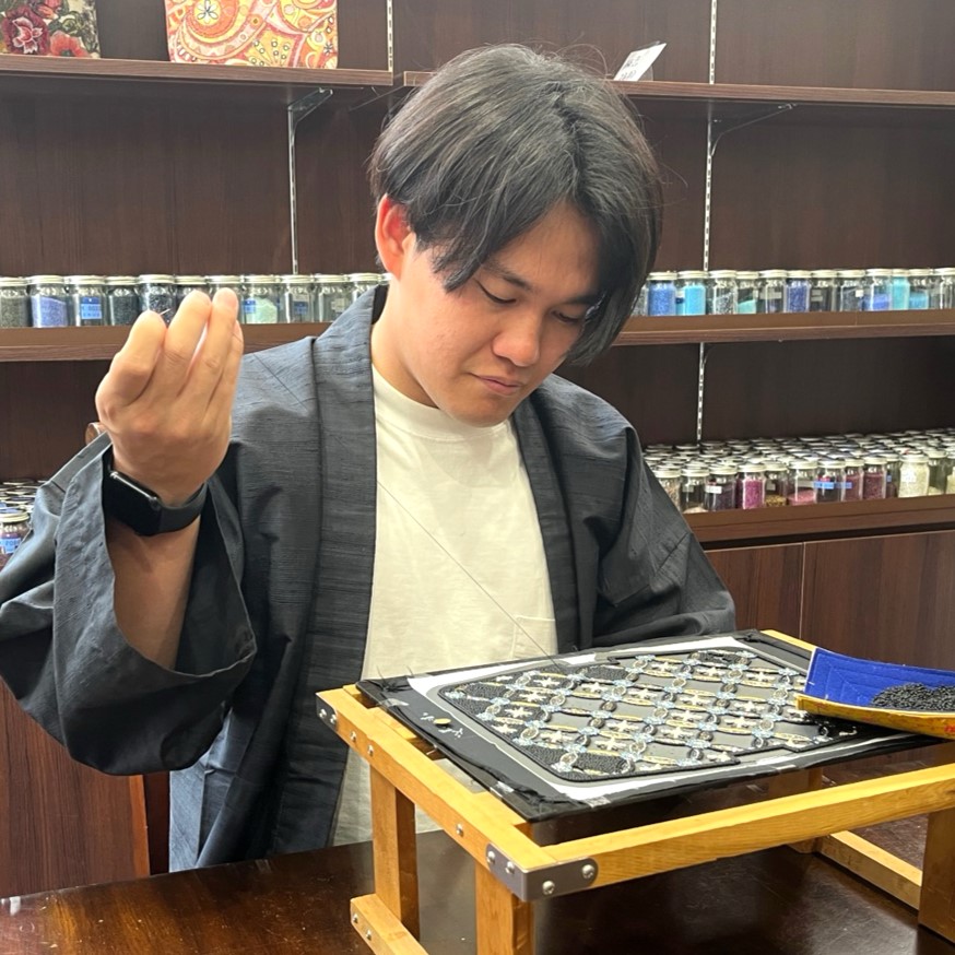 オーダーメイド・フォーマルバッグお作りします 2023.12.22 Share Tweet オーダーメイド・フォーマルバッグお作りします 柏ビーズではさまざまなデザインのビーズ刺繍フォーマルバッグを製作しております💐 高品質のグラスビーズを使用したビーズバッグは洋装・和装どちらでもお持ちいただけます。 職人が一針一針丁寧に刺繍を施したバッグの表面はビーズの緩みがなく滑らかで、お召し物を傷つけません。 結婚式をはじめ祝賀会やお食事会などのパーティーシーンの装いに、ぜひ美しいビーズバッグをお持ちください🍸 柏ビーズは全国の百貨店催事に出展しております。 職人がその場でオーダーメイドのご相談も承りますので、お近くにお越しの際は是非お立ち寄りください。 本社工房・日本橋店へもお気軽に問い合わせ下さいませ。 柏ビーズについて 昭和11年(1936年)、東京浅草でハンドバッグの製造、販売店として創業。その後、昭和24年(1949年)も本社を千葉県柏市に本社を移転。弛まぬものづくりへ情熱とこだわりが実を結び、平成5年(1993年)より、【千葉県指定伝統的工芸品】に指定されました。 創業以来80年、高品質の国産グラスビーズをふんだんに使用し、日本刺繍独特の手工芸技法を駆使して、気品と実用性を備えた製品作りを心掛けてまいりました。 平成26年(2014年)、二代目仙田秀一(現会長)が厚生労働大臣より、卓越した技能者【現代の名工】を拝受、また、平成27年(2015年)、【黄綬褒章】を拝受致しました。 弊社では、製造に関する作業を全て一貫して自社で行っています。 主な商品は、ハンドバッグ、ガマ口、財布、眼鏡入れ、草履です。また、個別で御誂え品も製造しています。 一針一針に職人の魂をこめて制作しております。 どうぞ、末永くご愛用くださいますよう、お願い申し上げます。 二代目 仙田秀一 平成 5年(1993年)『千葉県の卓越した技能賞』拝受 平成26年(2014年)『現代の名工』拝受 平成27年(2015年)『黄綬褒章』拝受 三代目 仙田和雅 平成17年(2005年)代表取締役就任 仙田晃 ビーズ刺繍のハンドバッグをデザインから刺繍、仕立て、販売まで一貫して自社で行っています。 柏ビーズ日本橋店 最寄駅 日本橋駅 D1出口 徒歩2分 茅場町駅(12番出口)徒歩5分 営業時間 12:00~18:00 定休日 日曜日・月曜日 所在地 〒103-0027 東京都中央区日本橋2-16-9 連絡先 TEL 03-3274-4181 柏ビーズ本社工房 最寄駅 柏駅(西口) 徒歩3分 営業時間 平日 9:00~12:00 13:00~17:00 休業日 祝日、年末年始、お盆 所在地 〒277-0841 千葉県柏市あけぼの1-1-5 連絡先 TEL 04-7143-4181 FAX 04-7143-4182 柏ビーズ刺繍教室 オンラインレッスン 日本橋店 営業時間変更のお知らせ 最近のお知らせお知らせ一覧 2025.07.08 日本橋店 営業時間変更のお知らせ 2025.03.17 柏ビーズ刺繍教室 オンラインレッスン 2023.09.19 ハローキティのビーズ刺繍財布 2023.11.15 【放送予定】NHK 「美の壺」 2023.06.01 柏商工会議所Youtubeで特集をしていただきました。